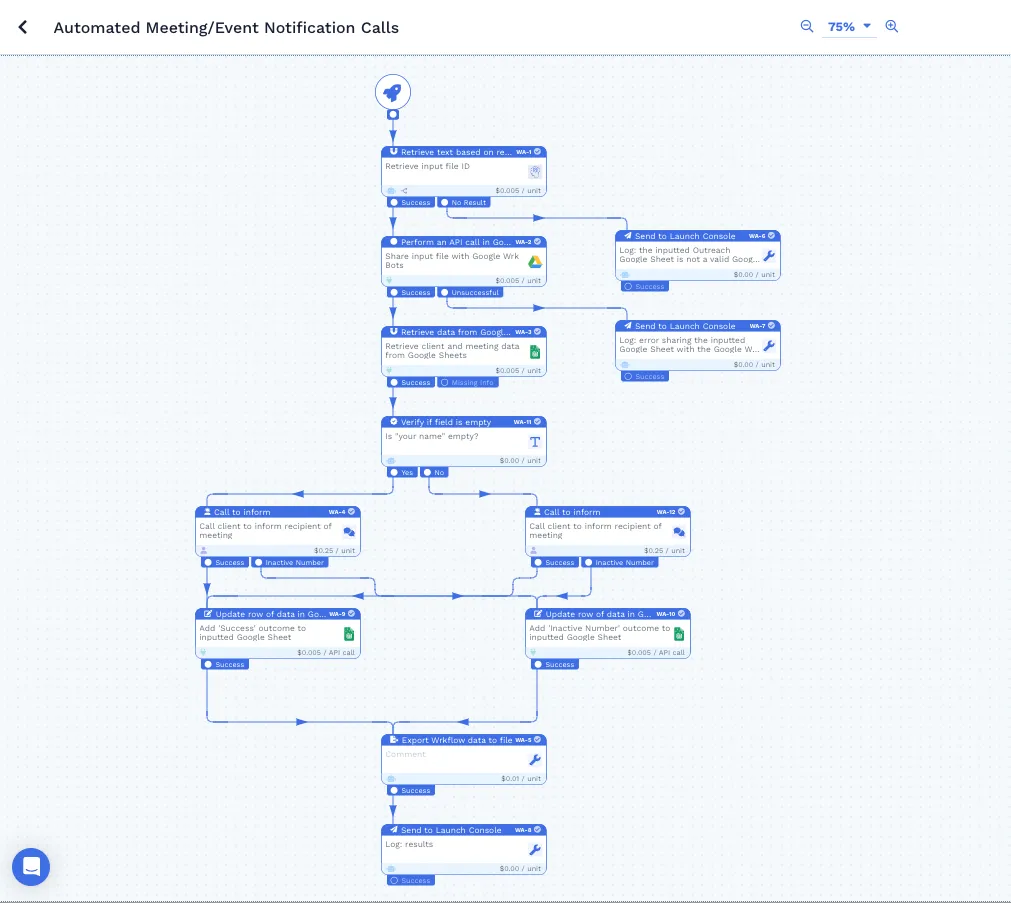 Elevate your client engagement strategy with our Automated Event Notification Calls Wrkflow. It's designed to streamline the process of client call management and meeting confirmations, enhancing both customer service and meeting preparedness.