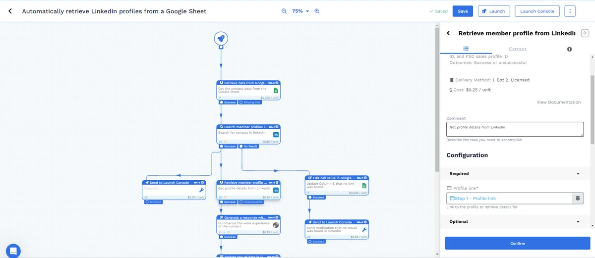 Automatically retrieve LinkedIn profiles from a Google Sheet
