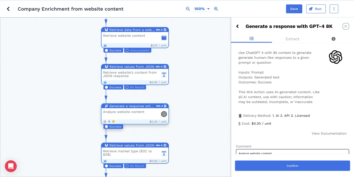 Unlock the power of website content with ChatGPT's "Company Enrichment from Website Content" workflow. We understand the value of turning unstructured web content into structured, actionable data that can drive your business strategies.Our automation seamlessly analyzes website content, extracting essential company information such as industry, location, key personnel, and financial data. It then enriches this data, creating a comprehensive company profile that empowers informed decision-making.Imagine the convenience of having access to company insights from the vast expanse of web content. Whether you're researching competitors, identifying potential partners, or tailoring marketing strategies, enriched company data derived from web content offers a wealth of opportunities to explore.