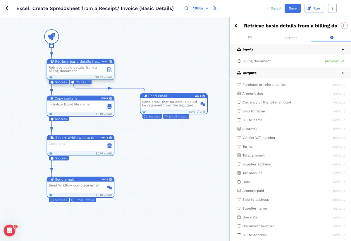 Transform your financial data processing into an efficient and organized endeavor. With Wrk's powerful automation, you can effortlessly extract critical details such as vendor information, payment terms, and delivery specifics from both invoices and receipts. By seamlessly converting traditional paperwork into comprehensive and actionable financial data, you're able to optimize resource allocation and make strategic decisions with confidence.