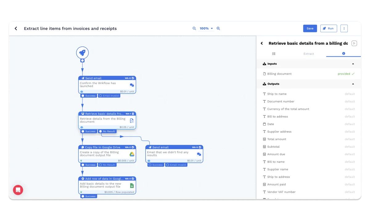 Transform the way you handle financial data. Leverage Wrk's automation to extract line items from invoices and receipts, turning cumbersome documents into a treasure trove of actionable insights for your business.