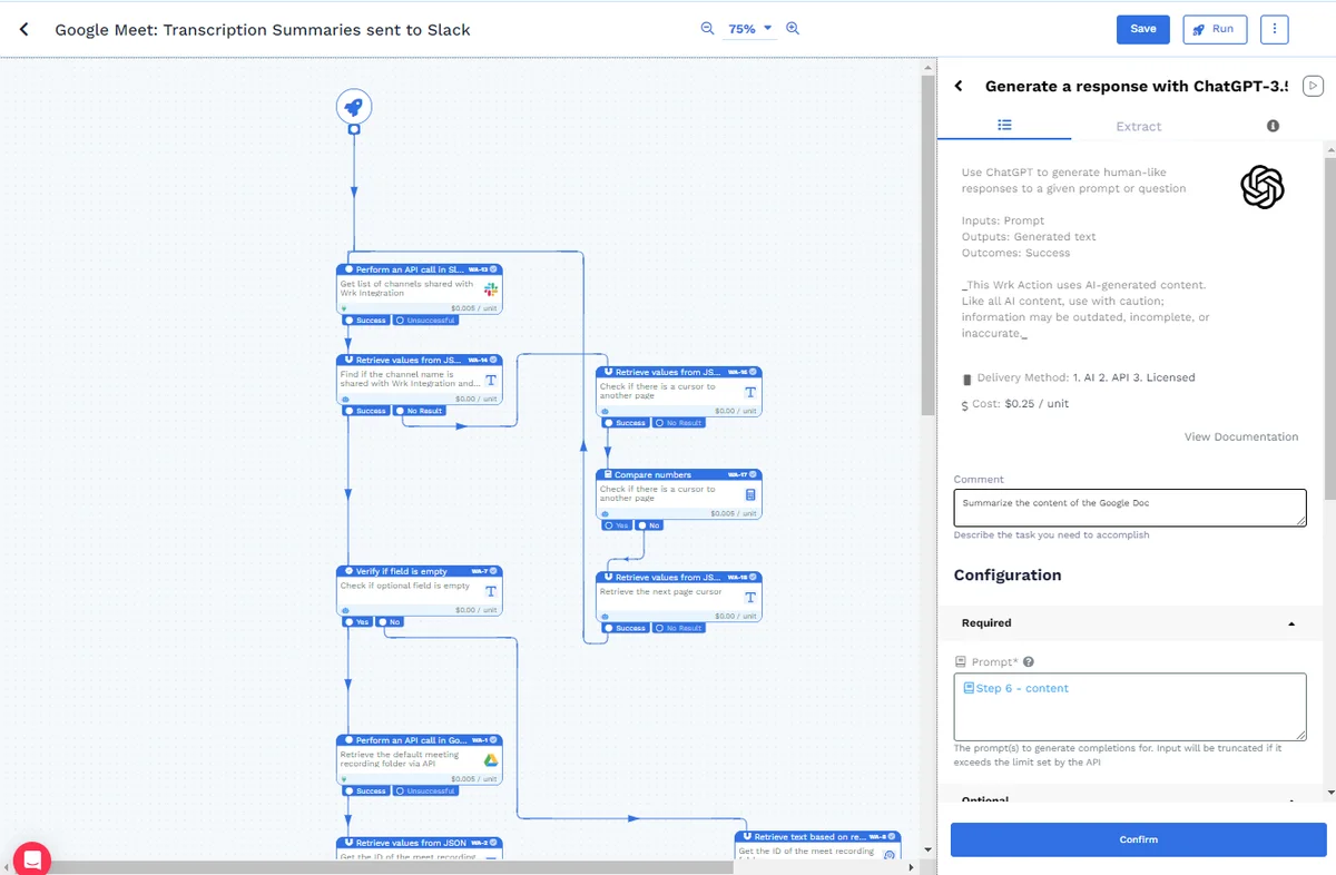 Automate Google Meet transcriptions with ChatGPT & share on Slack.