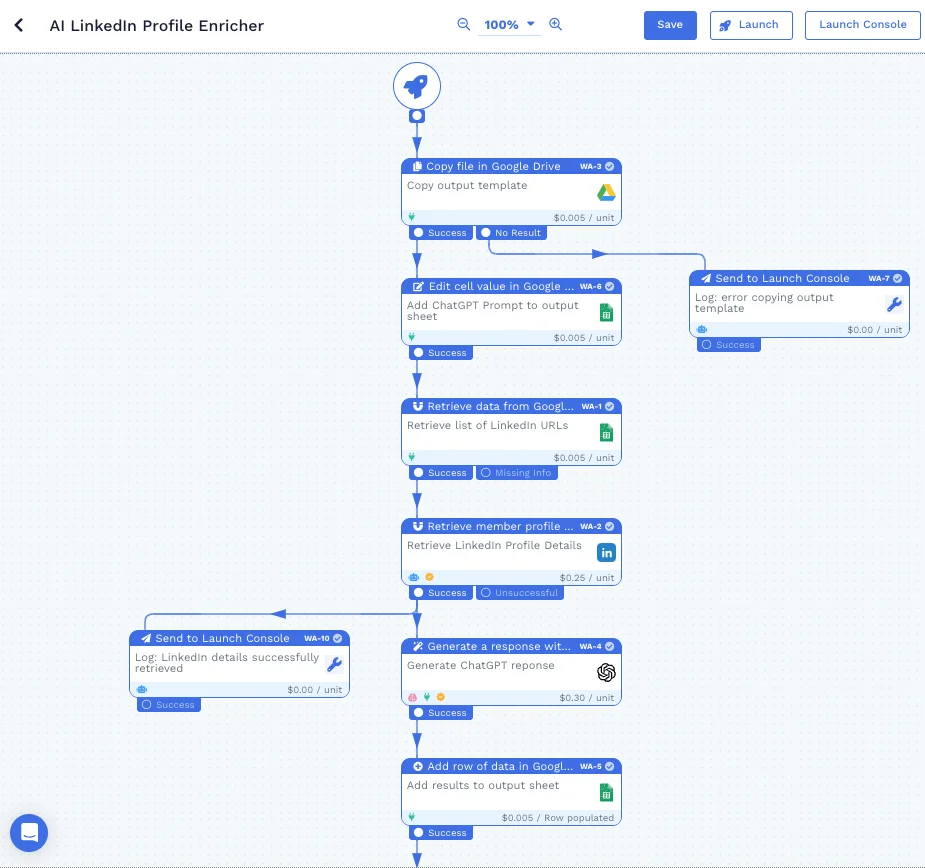 Our automated LinkedIn AI Profile Enricher revolutionizes how you interact with LinkedIn profiles. Transform data into actionable insights effortlessly and efficiently.