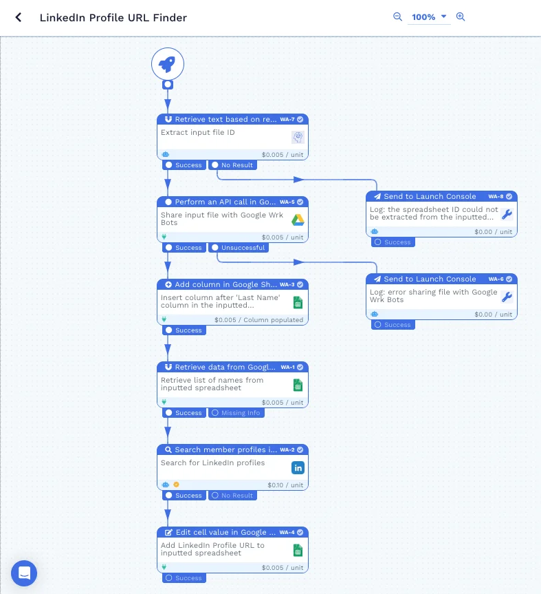LinkedIn Search: For each name on your list, our Wrkflow searches LinkedIn to find the corresponding profile.