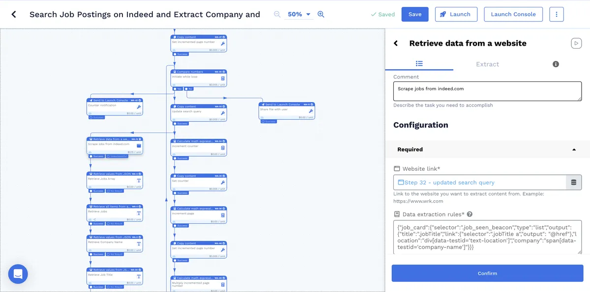 Efficiently gather job market insights. Our automation searches job postings on Indeed, extracting